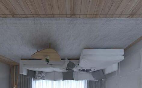 As principais adaptações no pavimento superior são na inversão de portas nos ambientes para facilitar o fluxo, inversão da disposição dos equiapamentos no espaço do banho e do fechamento de aberturas do ambiente e a remoção de um equipamento hidráulico do ambiente do dormitório.