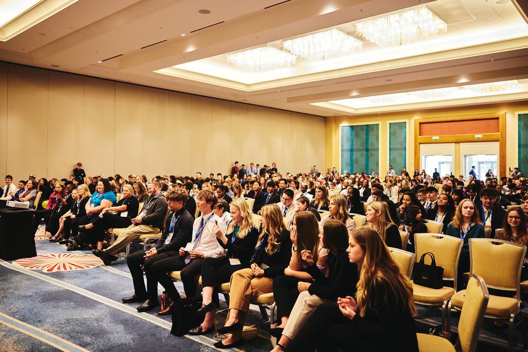 The State Leadership Conference kicked off with an energetic opening session during the first night of the conference. Local chapter members lit up the packed Orlando Ballroom of the Hilton Orlando with many light-up items, as the 2022-2023 State Officer Team kicked off conference activities. Several chapters from across the state were recognized for their distinguished participation in the projects of the organization. The state chapter recognized this year's Pansy B. Read Gold Seal Chapter Award recipients, as well as participants in the state activity, Keep Florida Beautiful, and service project, the March of Dimes.