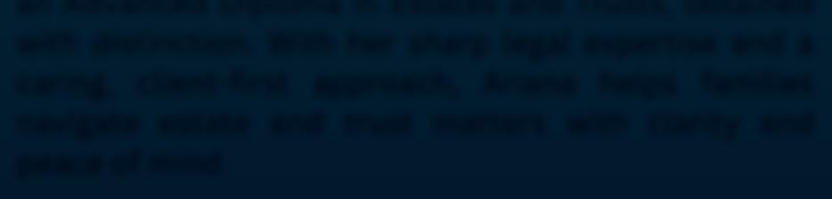 with distinction. With her sharp legal expertise and a caring, client-first approach, Ariana helps families navigate estate and trust matters with clarity and peace of mind.