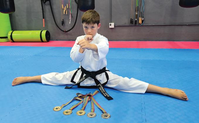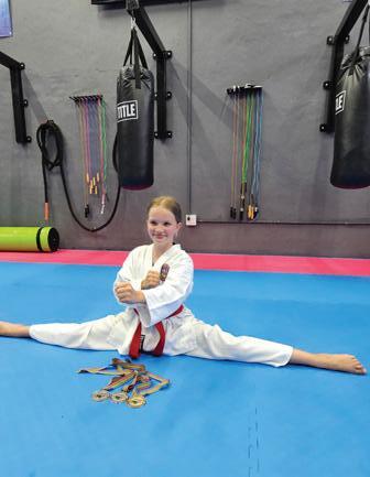 pandemic; being at home gave her more flexibility with how she focused her time. At 10 years old, she is a red belt black stripe with Provincial Colours, and aims to earn her National Colours within the next year. Lily has competed in 11 tournaments over the past two years and brought home 20 gold, nine silver, and five bronze medals.