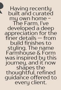 Farmhouse & Form Studio also offers expert guidance on finish selections, from tiles and flooring to cabinetry, paint tones, and final details Expert support for new builds and renovations