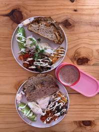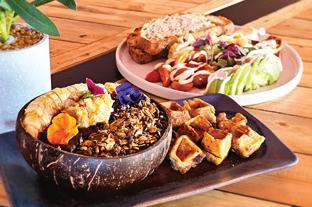 granola, fresh banana, berry compote, lime syrup, peanut butter crémeaux, yoghurt, accompanied by blueberry waffle bites. If a waffle doesn’t fit your vibe on that occasion, you can swap it out for sourdough toast like we did with the Smashin’ Avo; smashed avo, crumbly feta, crispy onions and a drizzle of hot honey makes for a wholesome breakfast.