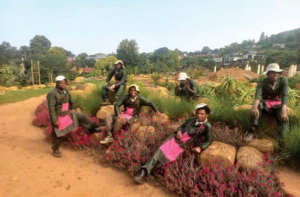 of ours. He is a knowledgeable, creative, kind, and straightforward person who runs his business in a very professional way,” she enthused. Many indigenous nurseries are based on the coast, where plants grow easily, but they are not tough enough for a Drakensberg garden. So, Alex focussed on Midlands plants that thrived in colder conditions. Jean and Ant Carte, who built Montusi Mountain Lodge on a neglected wattle wasteland, concur. “Alex has shared his experience, encouraged us to experiment and helped us propagate plants on-site. Our beautiful indigenous gardens are now a talking point amongst our guests. Other gardens might claim to be the best gardens in KZN but Montusi can certainly claim the title of Best Indigenous Nkosi Garden!” In 2017, Nkosi Nursery was awarded the contract to rescue and rehabilitate the slopes created by the upgrade to Sani Pass. Elsa Pooley had told the contractors, “There is only one person qualified for the job, with experience in dealing with the harsh winters of the inland areas. Alex.” Sani was an interesting challenge for the Nkosi team. “We needed a multi-pronged approach—we gathered seed, collected plants, dug up sods, saved topsoil and took cuttings.