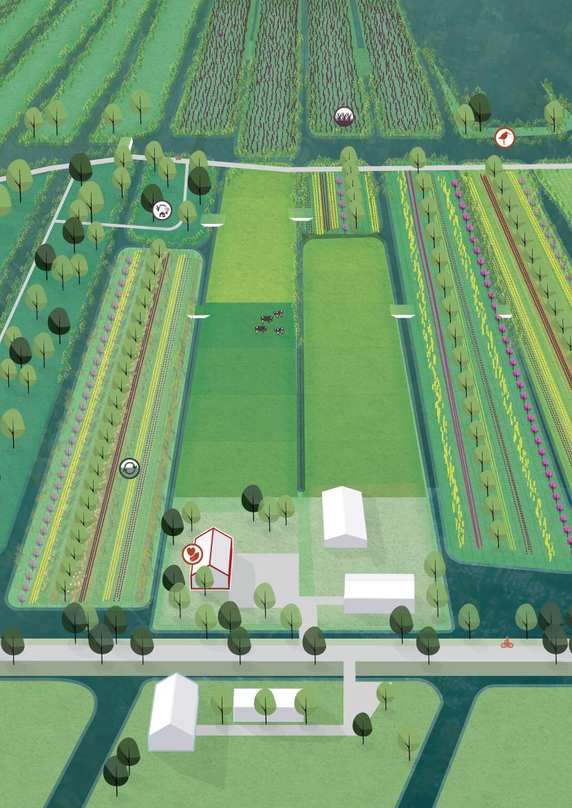 In dit gebied wordt de karakteristiek van de bodem beter zichtbaar doordat een deel natter gaat worden. Er zijn verschillende modellen voor agrarische bedrijvigheid denkbaar, wat zich zal manifesteren in het landschap: extensieve, natuurinclusieve veehouderij maar ook nieuwe innovatieve teelten die passen bij het karakter van het landschap.