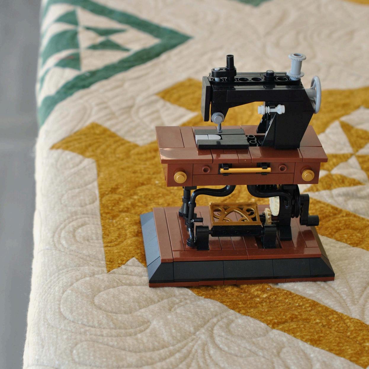 You’ll fall in love with building blocks all over again when you put together this vintage sewing machine by Sallie Tomato Turn the crank and watch the foot pedal and needle go!