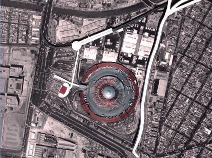 Debido al supuesto traslado del aeropuerto internacional de la CDMX, Terminal 1, a Texcoco, es posible el emplazamiento de un edificio de gran altura próximo a esa zona. El concepto consiste en los tableros y los taludes que son la principal característica de las pirámides prehispánicas. La pendiente en este proyecto juega un papel interesante al resolver el programa de lo ya existiente con los rascacielos. Además, se conectará y mejorará la calidad del lugar gracias a la solución de proponer un mercado en pendiente que atraviesa el terreno de un extremo al otro.