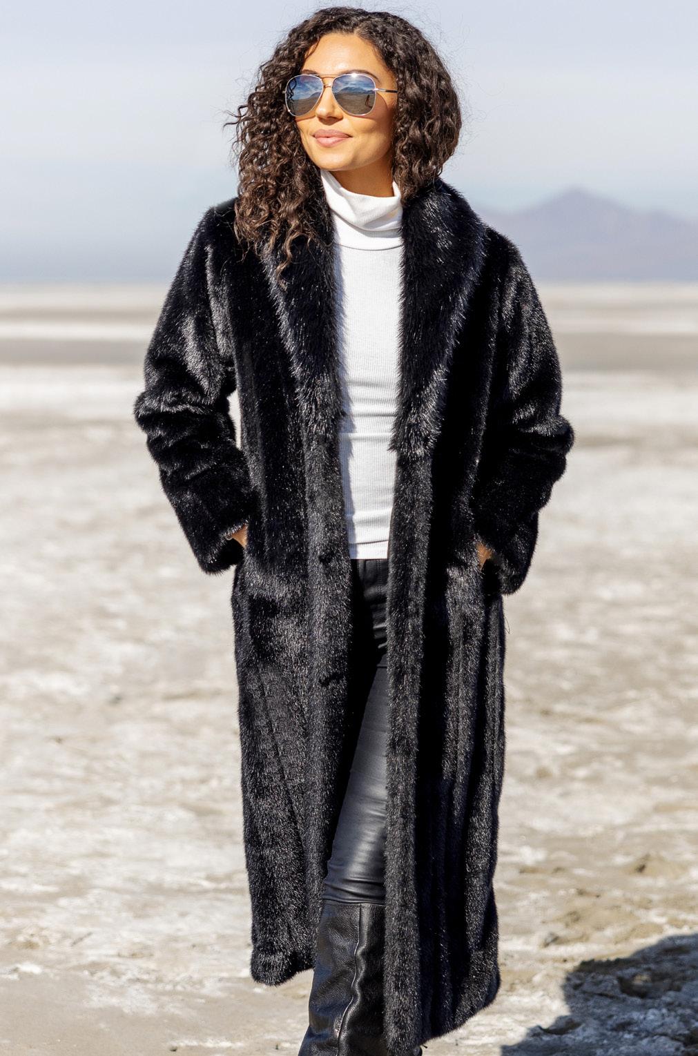 Sapphire Mink. Hook and ring closures. Velvet pockets. Made in the USA of Imported Fabric or Imported. 26". XS-3X.