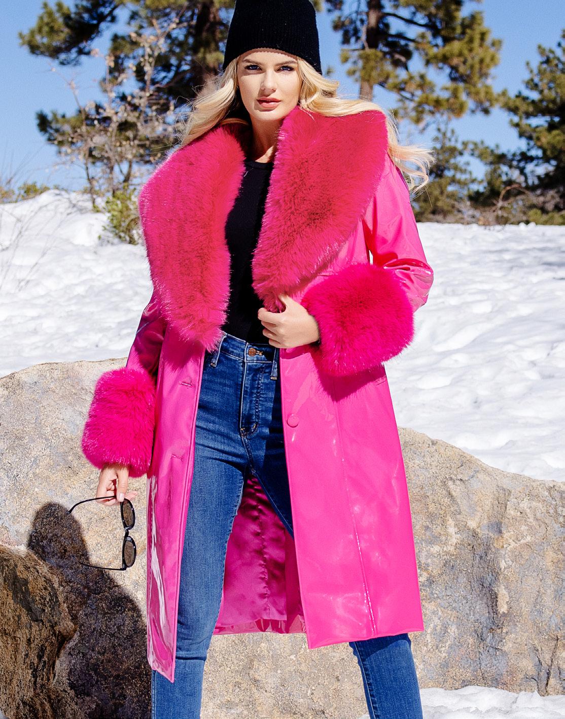 Hot Pink. Princess seams. Button closures. Welt pockets. Imported. 43". XS-3X 14743 | $350/NOW $295