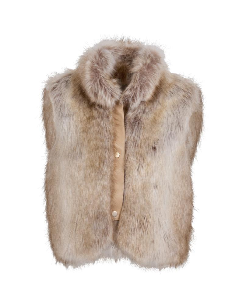 Blonde Fox or Smokey Fox. Faux leather trim. Snap closures. Hidden pockets. Imported. 19". XS-3X