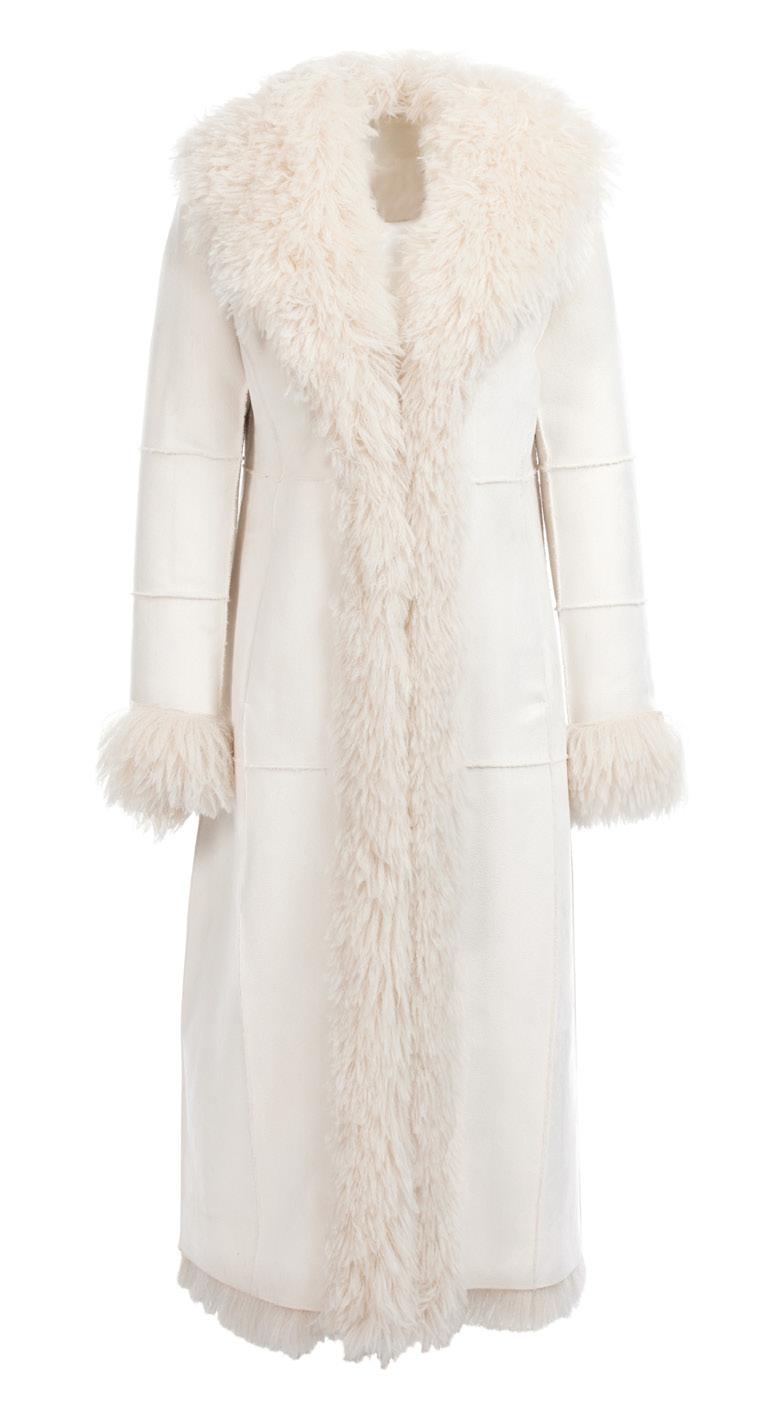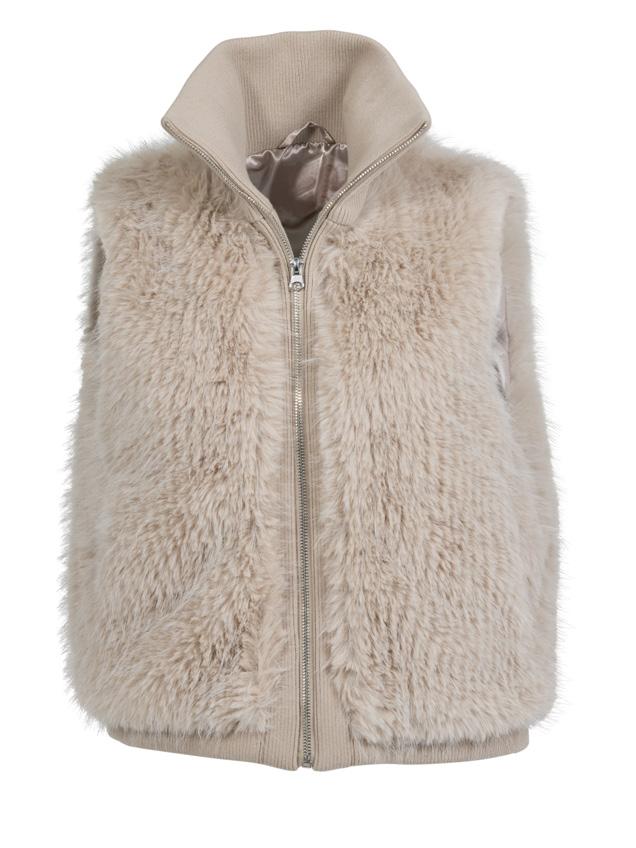 Ivory or Sable. Weather resistant tech reverses to faux fur. Zip closure.