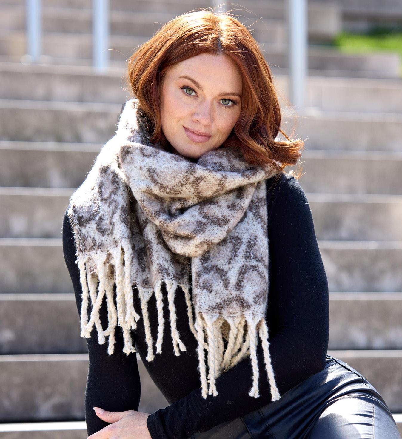 Leopard. Two-tone scarf with pocket on the ends. Velvet lining. Imported.