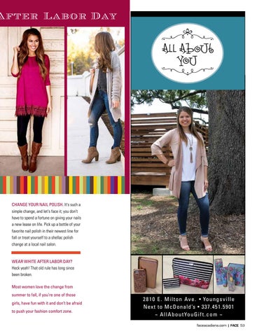 2 8 1 0 E . M i l t o n Av e . • Yo u n g s v i l l e Next to McDonald’s • 337.451.5901 ~ A l l A b o u t Yo u G i f t . c o m ~ faceacadiana.com | FACE 53