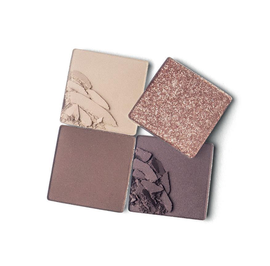"Runsaspigmenttisen, puuterimaisen luomiväripaletin neljä upeaa sävyä toimivat niin yksin kuin yhdessä. Sivele kermansävyä koko liikkuvalle luomelle, varjosta luomivako mattaisella vihreällä, sipaise ulkonurkkaan hohtavaa tummempaa vihreää ja piirrä pehmeät rajaukset kimaltavalla sävyllä. Luomiväreissä on silmänympärysihoa hoitavaa kookosöljyä sekä silottavaa sädeposliininkukan uutetta"