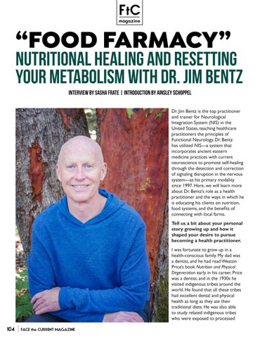 Nutritional Healing and Resetting your Metabolism with Dr. Jim Bentz Interview By Sasha Frate | Introduction by Ainsley Schoppel Dr. Jim Bentz is the top practitioner and trainer for Neurological Integration System (NIS) in the United States, teaching healthcare practitioners the principles of Functional Neurology. Dr. Bentz has utilized NIS—a system that incorporates ancient eastern medicine practices with current neuroscience to promote self-healing through the detection and correction of signaling disruption in the nervous system—as his primary modality since 1997. Here, we will learn more about Dr. Bentz’s role as a health practitioner and the ways in which he is educating his clients on nutrition, food systems, and the benefits of connecting with local farms. Tell us a bit about your personal story growing up and how it shaped your desire to pursue becoming a health practitioner. I was fortunate to grow up in a health-conscious family. My dad was a dentist, and he had read Weston Price’s book Nutrition and Physical Degeneration early in his career. Price was a dentist, and in the 1930s he visited indigenous tribes around the world. He found that all these tribes had excellent dental and physical health as long as they ate their traditional diets. He was also able to study related indigenous tribes who were exposed to processed