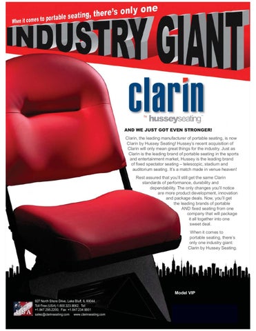 $1' :( -867 *27 (9(1 67521*(5 &ODULQ WKH OHDGLQJ PDQXIDFWXUHU RI SRUWDEOH VHDWLQJ LV QRZ &ODULQ E\ +XVVH\ 6HDWLQJ +XVVH\¶V UHFHQW DFTXLVLWLRQ RI &ODULQ ZLOO RQO\ PHDQ JUHDW WKLQJV IRU WKH LQGXVWU\ -XVW DV &ODULQ LV WKH OHDGLQJ EUDQG RI SRUWDEOH VHDWLQJ LQ WKH VSRUWV DQG HQWHUWDLQPHQW PDUNHW +XVVH\ LV WKH OHDGLQJ EUDQG RI ¿[HG VSHFWDWRU VHDWLQJ ± WHOHVFRSLF VWDGLXP DQG DXGLWRULXP VHDWLQJ ,W¶V D PDWFK PDGH LQ YHQXH KHDYHQ 5HVW DVVXUHG WKDW \RX¶OO VWLOO JHW WKH VDPH &ODULQ VWDQGDUGV RI SHUIRUPDQFH GXUDELOLW\ DQG GHSHQGDELOLW\ 7KH RQO\ FKDQJHV \RX¶OO QRWLFH DUH PRUH SURGXFW GHYHORSPHQW LQQRYDWLRQ DQG SDFNDJH GHDOV 1RZ \RX¶OO JHW WKH OHDGLQJ EUDQGV RI SRUWDEOH $1' ¿[HG VHDWLQJ IURP RQH FRPSDQ\ WKDW ZLOO SDFNDJH LW DOO WRJHWKHU LQWR RQH VZHHW GHDO :KHQ LW FRPHV WR SRUWDEOH VHDWLQJ WKHUH¶V RQO\ RQH LQGXVWU\ JLDQW &ODULQ E\ +XVVH\ 6HDWLQJ