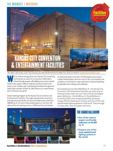 KANSAS CITY CONVENTION & ENTERTAINMENT FACILITIES 301 West 13th Street, Suite 100, Kansas City, MO 64105 • (816) 513-5000; Fax: (816) 513-5001 • www.kcconvention.com