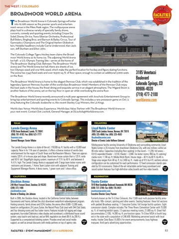 3185 Venetucci Boulevard Colorado Springs, CO 80906-4020 (719) 477-2100 worldarena.com