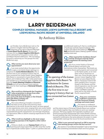 FORUM Larry Beiderman Complex General Manager, Loews Sapphire Falls Resort and Loews Royal Pacific Resort at Universal Orlando