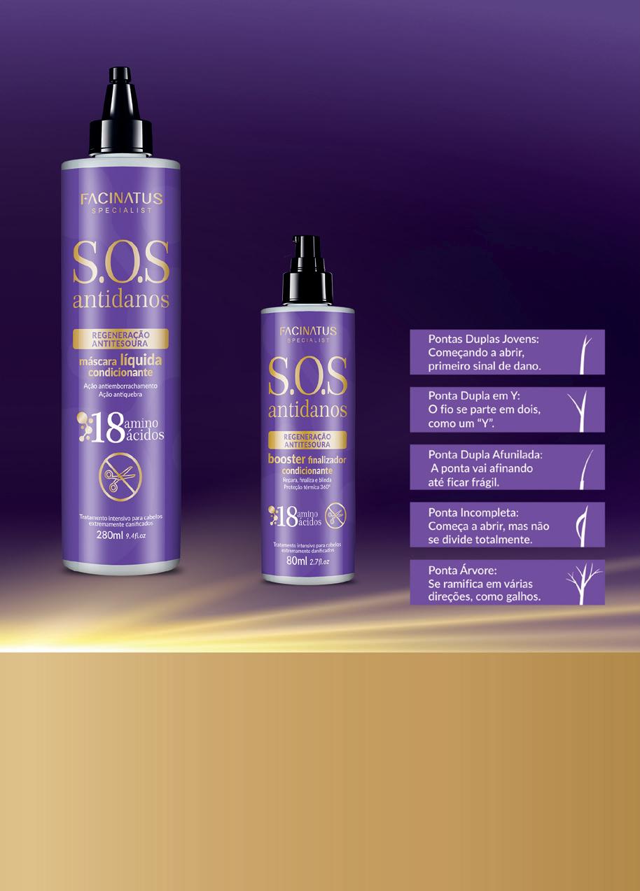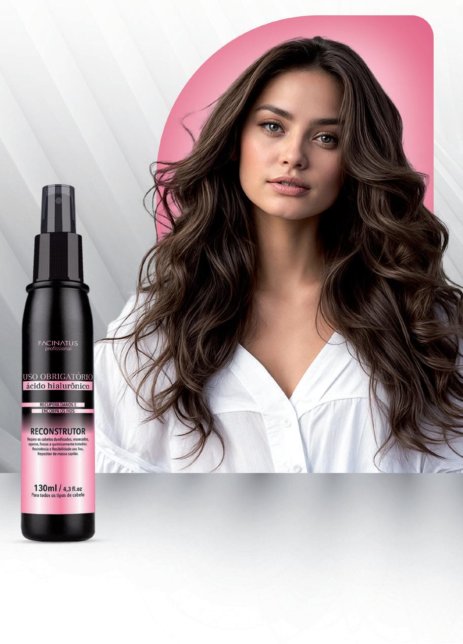Fios com danos moderados - Após o uso do shampoo e condicionador, aplique o reconstrutor, que não necessita enxágue. Depois finalize com o selador de pontas.