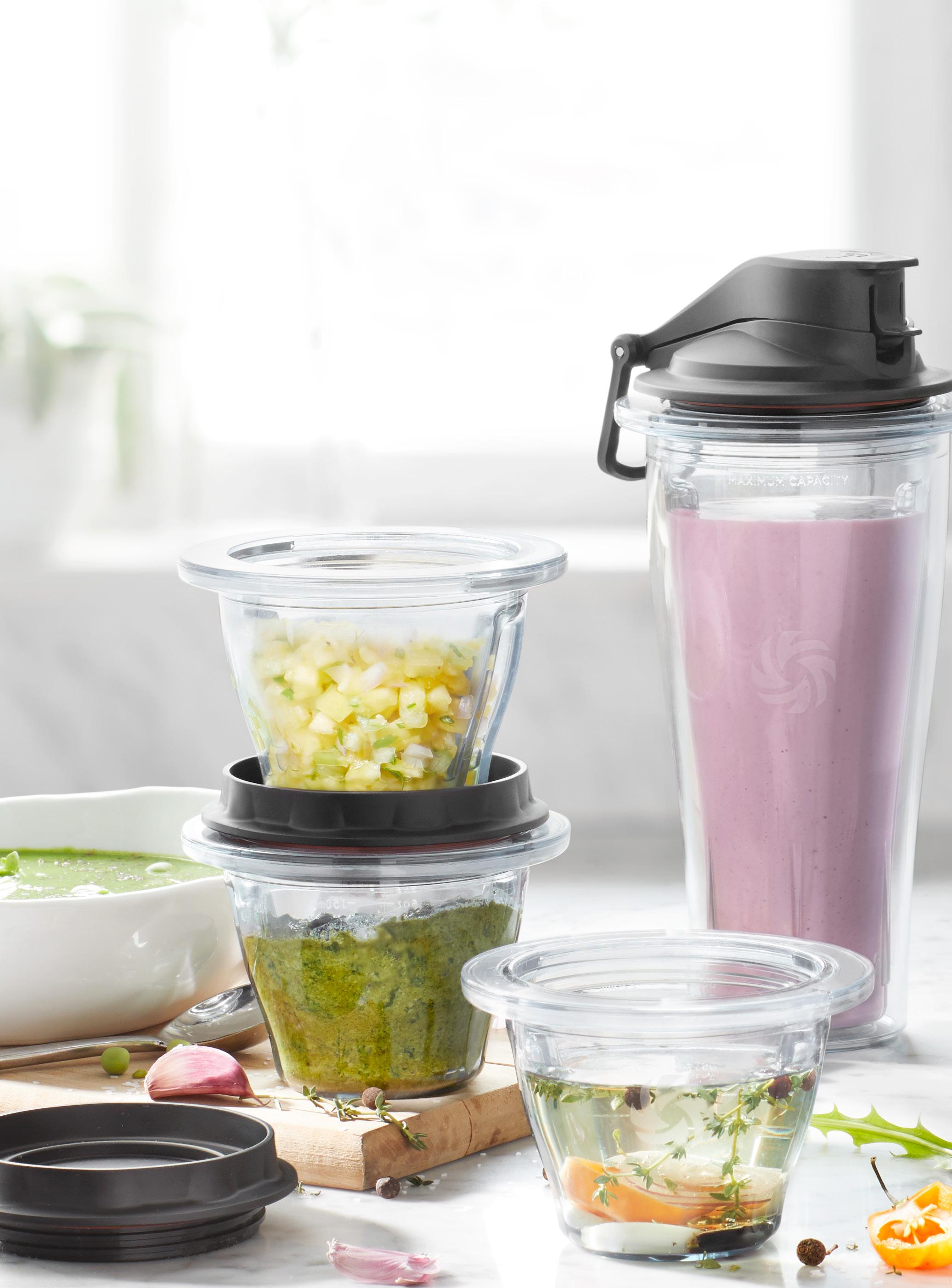Add the convenience of a personal blender to your full-size machine and blend just the right amount to avoid food waste.