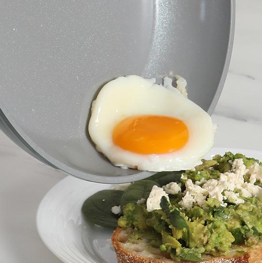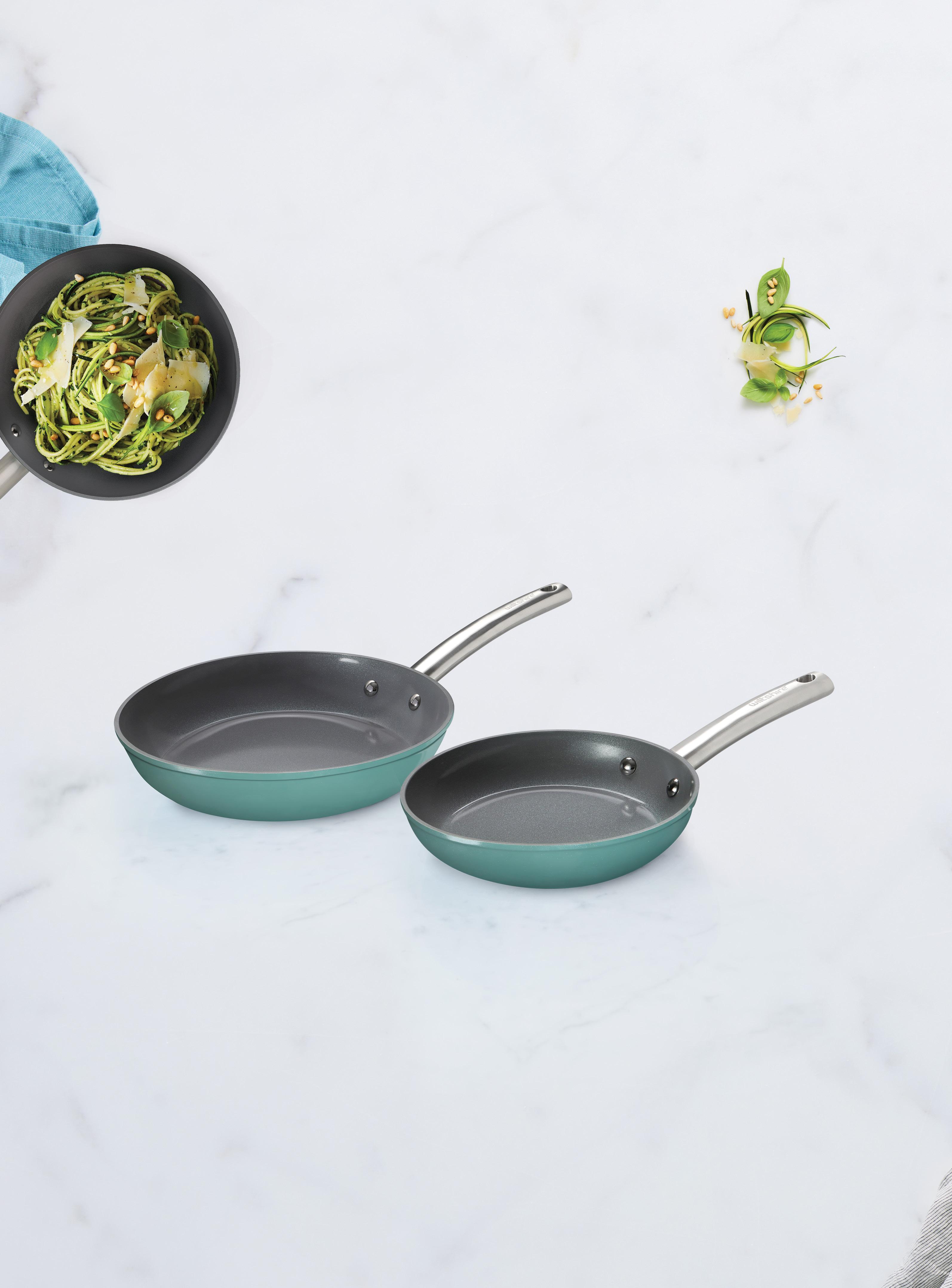 Designed to be your everyday go-to. Our long lasting and great looking pans are now available in a two-layer ceramic non-stick coating, so you can cook with minimal oil while effortlessly tackling sticky and burnt-on food residue during clean up.