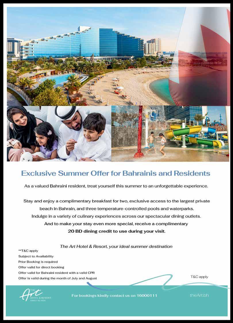 Call to book the Bahrain Residents O er that includes 20% o the room rate and exclusive savings on dining.