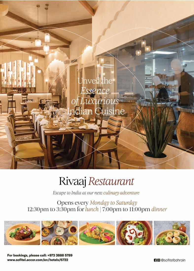 Experience a new vegan concept and enjoy a culinary journey that celebrates veganism and traditional Indian flavours. Enjoy dishes such as Chowk ki Tikki and Pindi Choley, crafted with fresh, local ingredients and authentic spices. Runs Tuesday to Sunday, from 12pm to 3pm and 7pm to 11pm, priced à la carte. GO: Call 1758 6499 or email rc.bahrz.restaurant.reservations@ ritzcarlton.com for more information or to make a reservation.