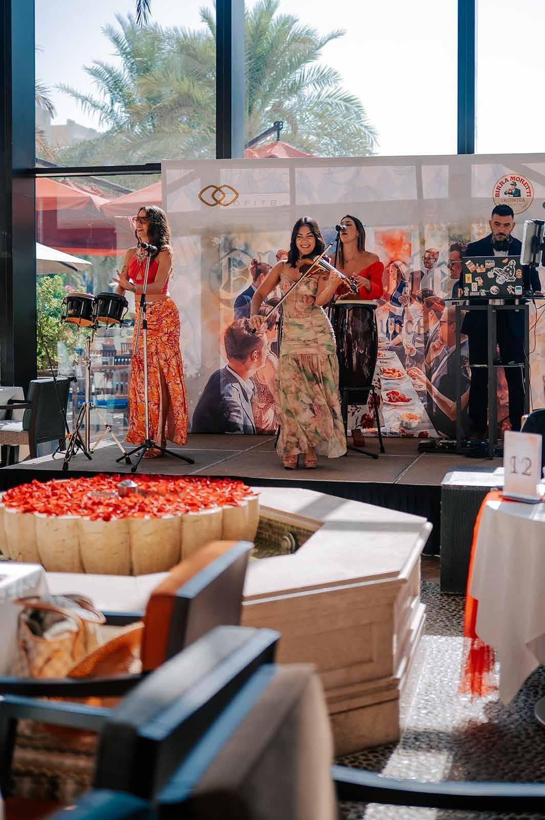 With its rooftop terrace, outdoor stage and both indoor and outdoor seating, Al Sedra provides an ideal setting. Large outdoor projectors and TV screens inside the restaurant display short films and scenes that connect the performances and enhance the storytelling, allowing all guests to follow along, even those who don’t have direct stage views.