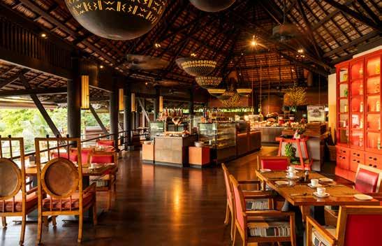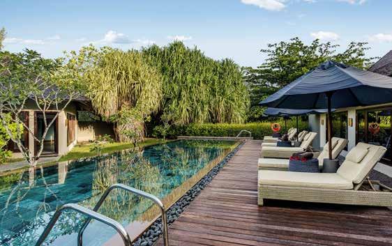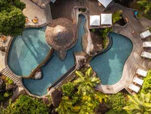each treatment room, this part of the property is a jewel in a lush tropical scenario. I headed there for a classic massage to immerse myself in relaxation. My therapist, Ratna, understood the task and, instead of working on pressure points, she delivered a treatment that allowed me to enjoy a true state of restfulness. The wind outside, kissing the palm trees that eventually touched the natural roof of the hut, created a sound that made my mind drift away. If you like water, there are eight pools spread across the property and two boathouses offering watersports gear on each side of the resort. You can choose from pedal boats, small sailing catamarans, kayaks and snorkelling gear. However, if you prefer land sports, you'll find four tennis courts, padel and squash courts and a fully equipped gym to help you keep up your workout routine. There is even a kids' club called Coconut Tribe.