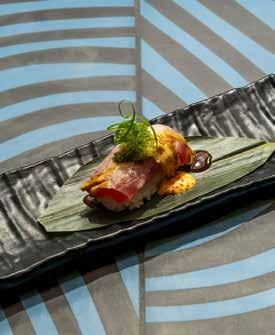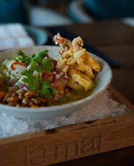 Shortly after, three cold appetisers hit the table. The Salmon Nigiri looks elegant and classy with Anticuchera Sauce. It's melt-in-yourmouth delicious and created with such finesse. The Conchitas are more playful, sitting inside a shell. The leche de tigre is smoked and brings about incredible notes along with a sharp tang. And how can we dine in a Peruvian restaurant without a bowl of ceviche? The leche de tigre in this dish is elevated with saffron flavour. Sweet potato is usually the 'Best Supporting Actor' here, but La Mar has replaced it with torched avocado. The culinary artistry is hard to ignore – especially when it tastes so good. Add caviar and coriander on top of mixed seafood and you have a luxury dish right in front of you. We are also treated to some hot appetisers –Croquettas with Smoked Beef and sriracha mayo, with grated chorizo on top, and Squid Ink Croquettas made with a squid ink bechamel. A side of Chalaquita Salad with Rocoto mayo beautifully complements the croquettas.