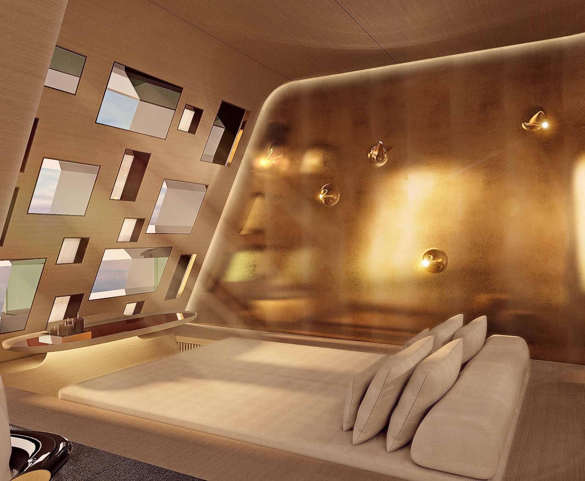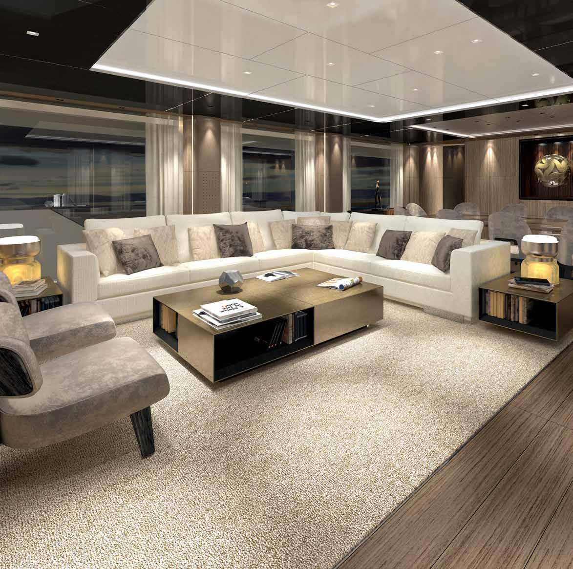 Progressive and creative thinking extends to all the systems aboard. LuxLab, the custom design label from Van Berge Henegouwen (VBH) has joined the team to ensure that this is an extremely “smart boat.” Not only are there controls for HVAC, lighting, audio, video, curtains and such, but controls will also monitor behavior aboard regarding preferences such as music and temperature. Furthermore, there are plans to create a 360 room, a multipurpose space for both interactive design and information.