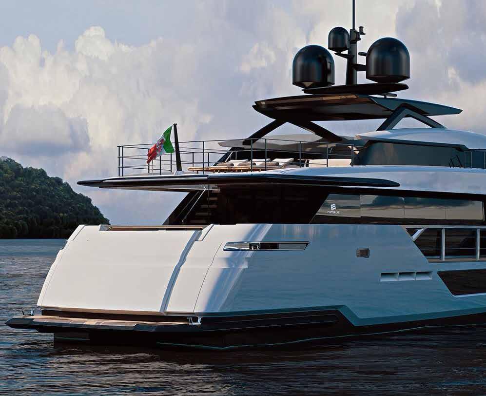 he new Custom Line 106 is the second planing yacht our design firm developed for restyling the Custom Line range while keeping continuity with the successful design, functionality and technical issues the brand is renowned for.
