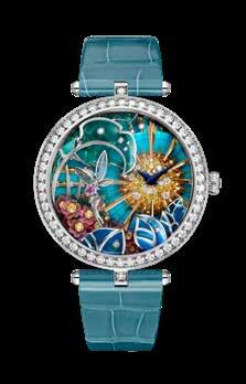 The 38mm watch features an on-demand automaton movement, allowing users to animate the dial with the push of a button, at which two butterflies gracefully return to their initial position to indicate the time, alternating at noon and midnight.
