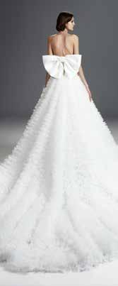 Follow the go big or go home saying with this Reem Acra number. The XXL fluffy skirt can be tricky to fit in the car, but it will undoubtedly be remembered by all the guests.