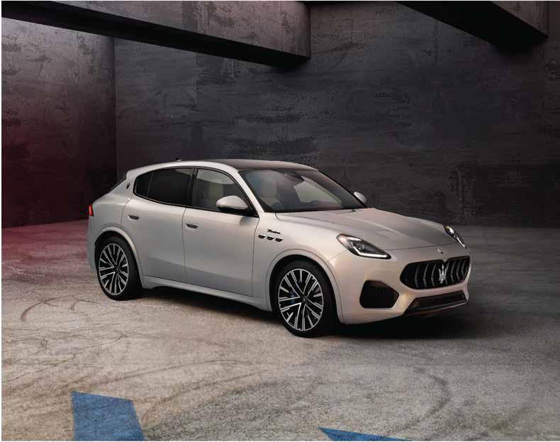 where boomerang taillights – inspired by the Giugiaro 3200 – integrate flawlessly with the uniquely crafted lip spoiler. The body-coloured bumpers at both front and rear contribute toward the SUV’s upmarket appearance, while the twin dual exhaust system, sitting under the diffuser, provides a subtle reminder of the Grecale’s on-road intentions.