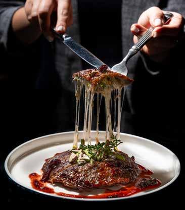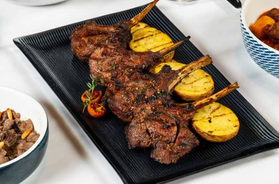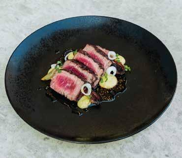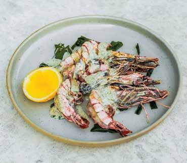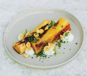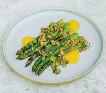 The menu is straightforward, and I personally liked that it offered a variety of small plates for sharing. I am an olive lover (any type), and if I see them on a menu, I tend to go for them. The mixed selection of green and black types came bathed in herbs, chilli, onions and garlic, very succulent and yummy just how I like them. We then tried the Burnt Leeks, charred on the outside and moist and juicy on the inside. This was accompanied by toasted hazelnuts and whipped ricotta, which added a delightful contrast of creamy, light texture with rich, nutty, earthy notes, creating a sweetsavoury balance to the dish. My dining companion couldn’t stop raving about how delicious it was. We also ordered the Charred Asparagus served with runny smoked egg yolk and sauce vierge (an uncooked French sauce typically made with tomatoes, olive oil and fresh herbs such as parsley). The vegetable was crunchy, the way I like it, and the flavour profile played with the deep, buttery richness of the yolk, with the fresh, acidic notes of the sauce adding complex layers to the grassy hints of the asparagus – it was my turn to be enthusiastic about how divine it was.