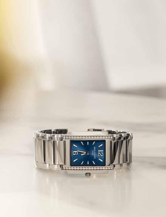 The new models are crafted with the line’s signature step dial, featuring a double plate. The top plate is polished black, with a varnished and lacquered finish for superior sheen and includes rhodium-plated subdial frames. The base layer for the subdials is produced in white on the main dial, while the subdials feature minute tracks transferred in black.