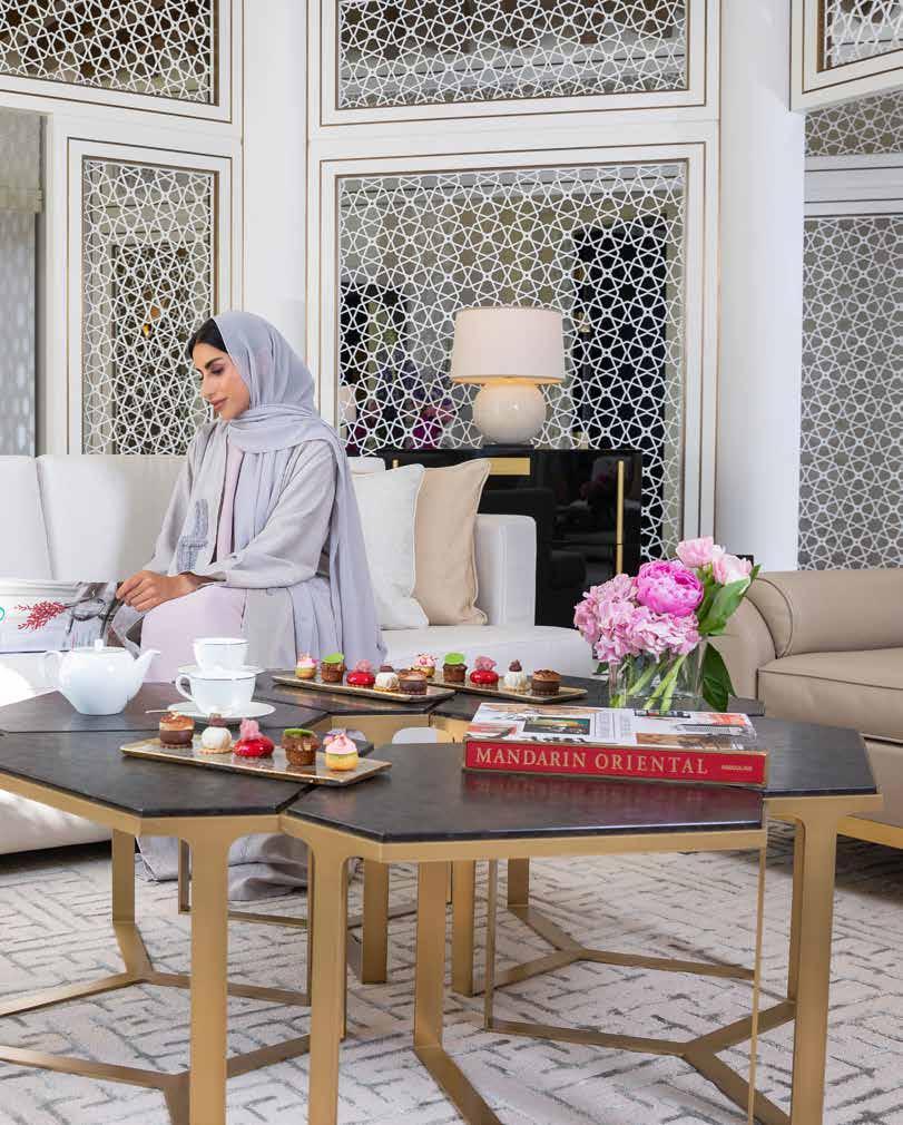 capsule. Welcome to the old port of Doha, circa 1930. Every element adds to the illusion. Vintage packing cases, trunks and valises line the walls. Their details are picked up in the stylish furniture, iron-cornered and leatherstrapped, subtly weathered as though with many climates and miles. The walls are papered and stamped with old maps of Qatar, while the floor, tiled and banded with iron, is embossed with the names of Qatar’s historic ports. We bag a corner table on the columned and shaded balcony, the cool white lines of Msheireb Downtown to our backs, the low roofs of the souq laid out before us. Breakfast is naturally the most important meal of the day, and Le Colonial ensures all visitors start the day with style. Just as the décor unites Qatar’s past and present, the menu connects Doha to the world. Local and regional specialities are presented alongside international classics, with equal emphasis on quality, local ingredients. The viennoiserie pastries are as authentic and fresh as the za’atar manakish flatbreads, steaming from the oven. Here, brioche French toast meets its match in lemon labneh, while Belgian waffles are bested only by balaleet – a Qatari classic of fine vermicelli scented with rosewater, cardamom and saffron, set against a velvety omelette. We opt to try both faces of Le Colonial. My companion can’t resist the Parisienne breakfast, a winning combination of hearty eggs Benedict followed