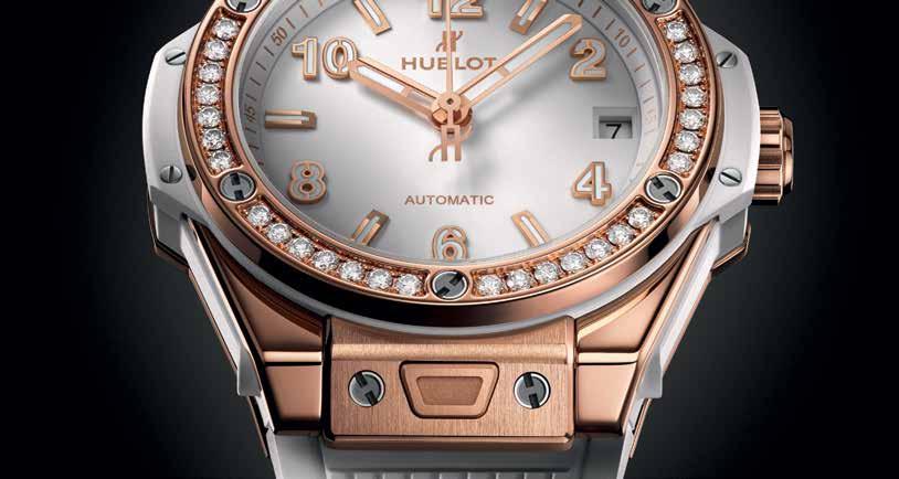 hublot.com BigBangOne Click. Case in18K KingGol d .Bezel set wi t h 42 diamon d s.Self-windingmovement. Interchange a ble rubberstrap us i ng pa t entedOne-Click system. +97444478888 Doha,Qatar www.almajedgroup.me almajedjw