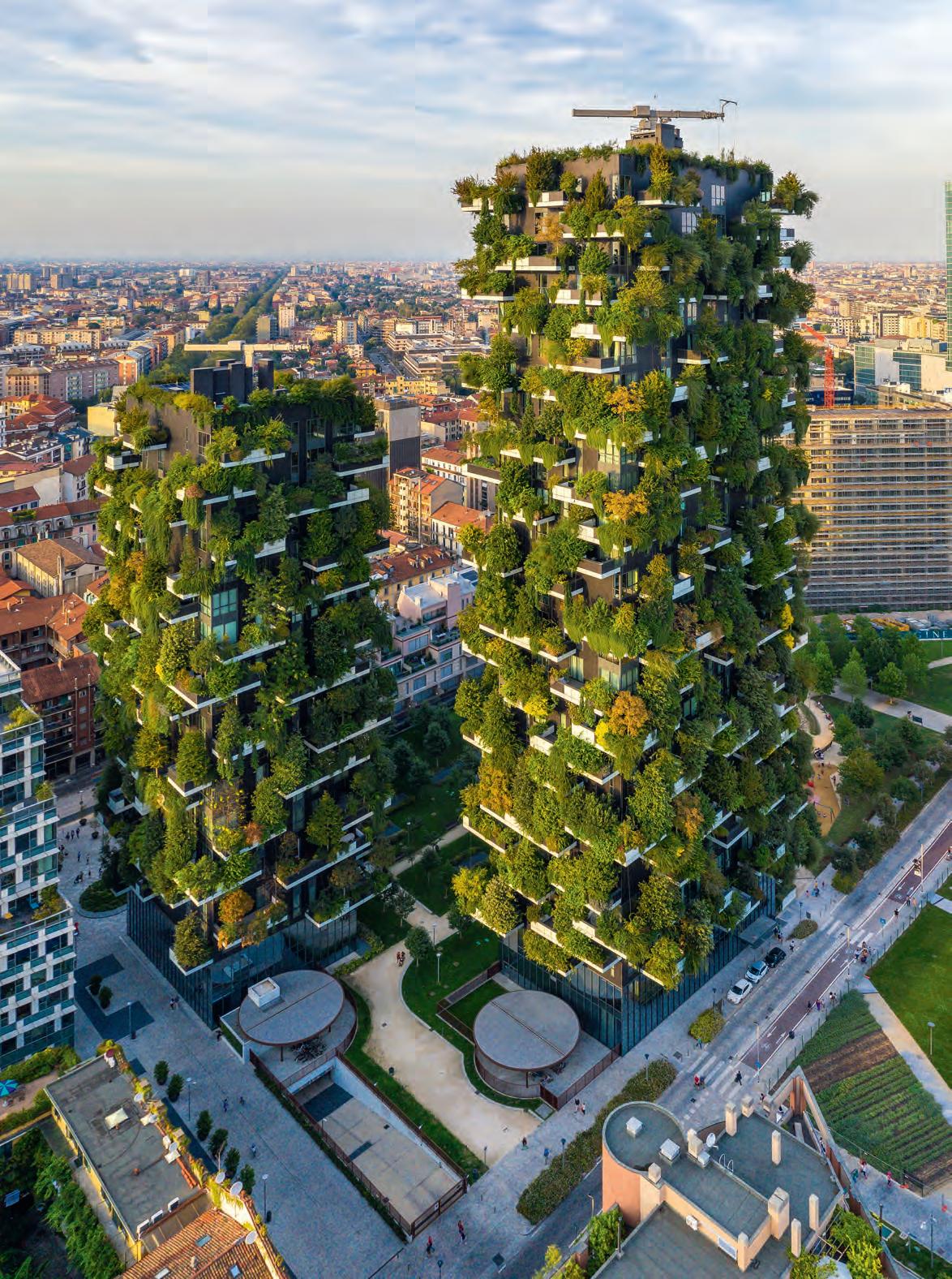 Los jardines de la ciudad italiana invitan a vivir al aire libre, incluso los verticales. // Milan’s gardens invite you to live outdoors, even the vertical ones.
