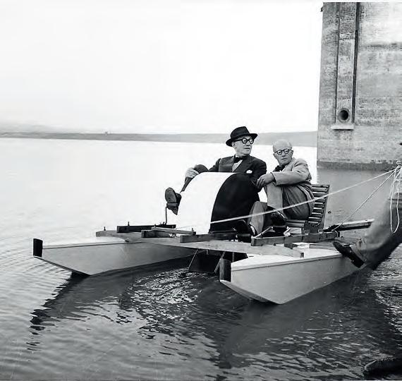 //Le Corbusier and Jeanneret at Sukhna Lake in Chandigarh, India (1960).