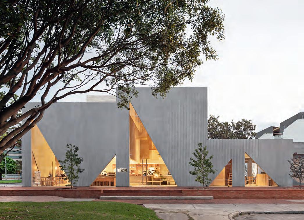 En el popular barrio de Chapinero, en Bogotá, existe un lugar con aromas dulces que bien podría parecer un museo de arte contemporáneo. El Studio Cadena es el responsable de esta joya de arquitectura del siglo XXI, el restaurantepanadería Masa, un edificio con varios volúmenes interconectados que alberga una cafetería, una panadería y un espacio comercial. Materiales sencillos para que la luz sea un elemento más de la construcción, y unas ventanas triangulares, recortadas en los muros de hormigón, que abren la fachada a la calle y revelan la vida en el interior. Dentro, un tranquilo patio exterior con vegetación para degustar su animada carta: de su sándwich de pollo crocante a la infinita oferta de zumos recién exprimidos. Así es la nueva vida tranquila a la colombiana.
