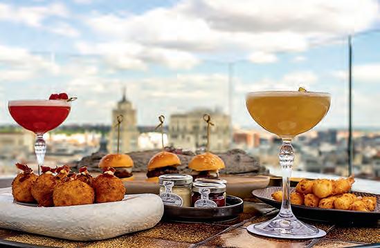 Saborea Madrid desde el rooftop más alto de Gran Vía: tapas creativas, cócteles exquisitos y atardeceres de ensueño. // Savour Madrid from the highest rooftop on Gran Vía: creative tapas, exquisite cocktails, and dreamy sunsets.