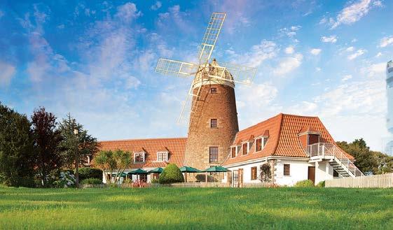 A “posh cafe” sharing the iconic Windmill with Catherine Best jewellery workshop & showroom in St Peter. Dating back to 1837 it is the most southerly windmill in the British Isles. Has large sunny terrace.