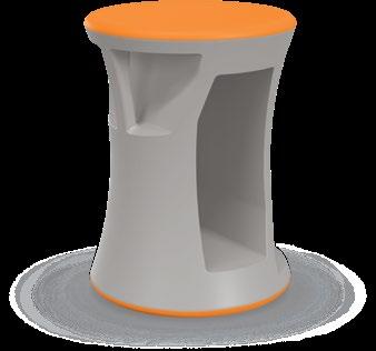 ▪ Dot Rocking Stool (A): Rocking motion created by a smooth black base allows these cylindrical soft seats to create rhythmic micro-movements that help release excess energy.