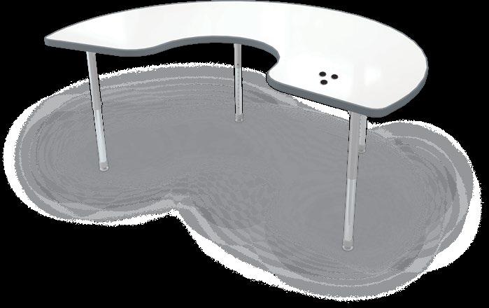▪ Inklüd™ Tables: Inspire and involve with Inklüd! This deceptively simple family of training and collaborative tables features a tubular platinum base with superior mechanics, elevating any environment with a sleek and modern profile. Hierarchy Activity Kidney Table Hierarchy Activity Rectangle Table