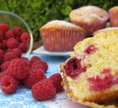 Peneira-se a farinha e o fermento, juntam-se os flocos de aveia e metade das framboesas, incorporando com cuidado, apenas o suficiente para que a farinha desapareça - não bater em demasia senão a massa fica muito pesada.