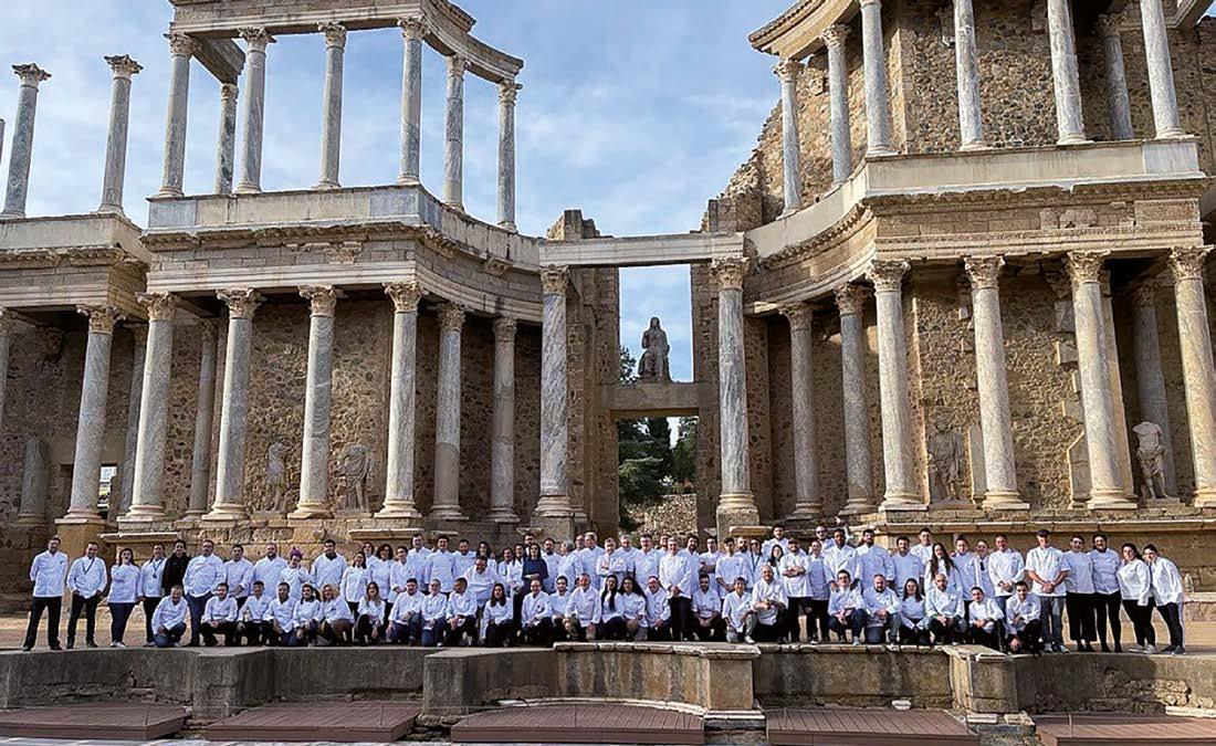 El Teatro Romano de Mérida fue testigo de la foto de familia que se llevó a cabo antes de la entrega de premios. Los cocineros de todos los equipos participantes junto con el jurado y los alumnos de la Escuela de Hostelería y Agroturismo de Mérida se dieron cita a las puertas del teatro junto a la representante institucional del Ayuntamiento de Mérida, la concejala de turismo Pilar Amor. La foto, realizada en el escenario romano, dejó una estampa única en la gastronomía nacional.