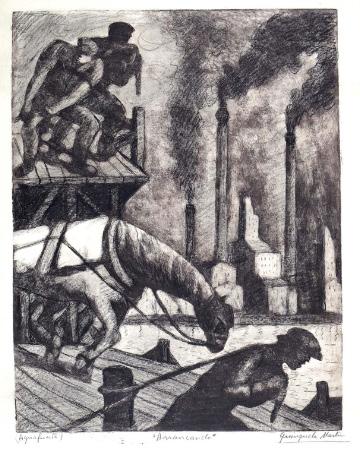 Arrancando, Aguafuerte 76 x 60 cm Colección Museo de Arte Tigre