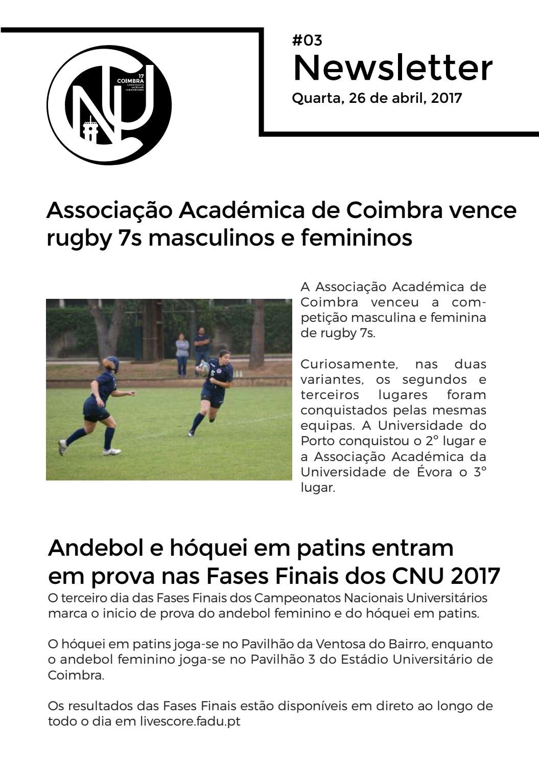 Newsletter do 3º dia das Fases Finais dos Campeonatos Nacionais Universitários - Coimbra 2017
